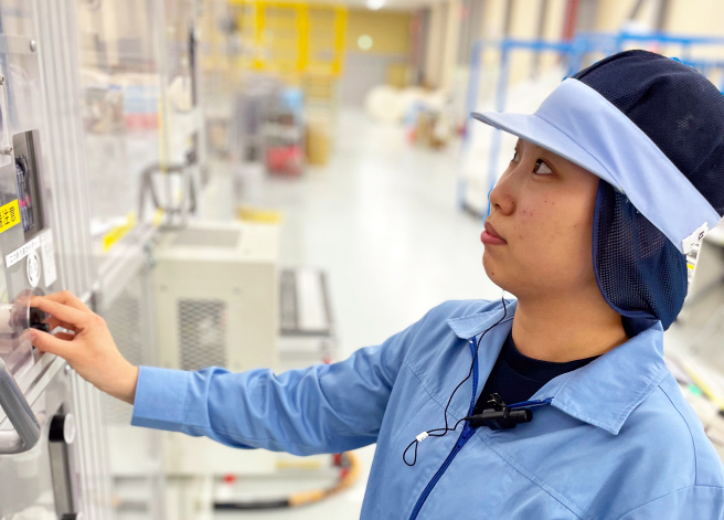 具体的には、加工機の操作や資材(材料)の供給作業を担当しており、商品の品質を管理しながら仕事を進めます。