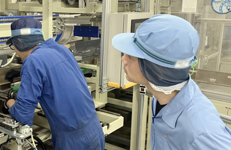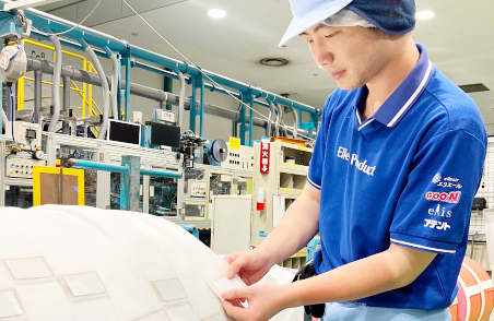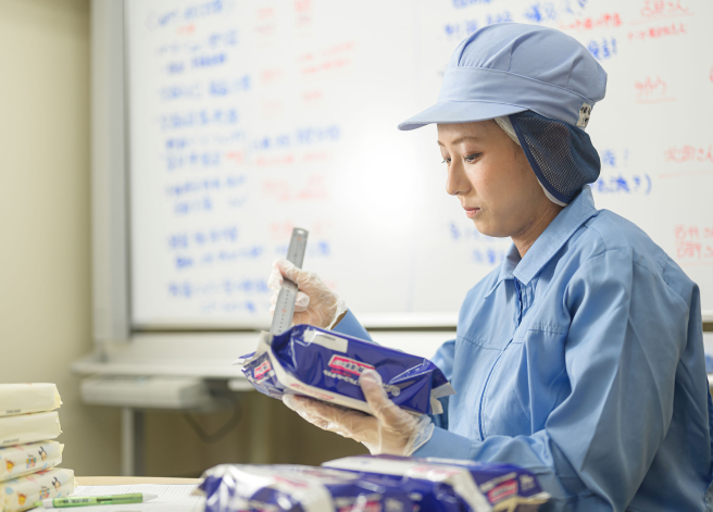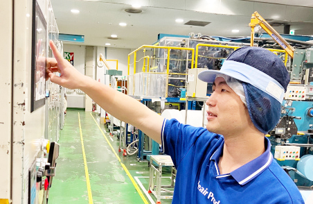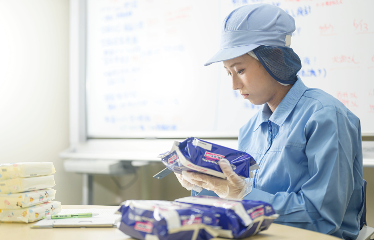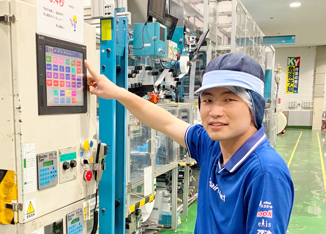 具体的には、汗拭きシート(WL/RR)の生産に関わる工程で、商品の資材交換や機械の操作を行っています。